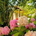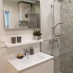 Værelserne har udsigt til terrassen. Badeværelse har også badehånklæder, håndklæder og en hårtørrer med et bidet og et badekar.